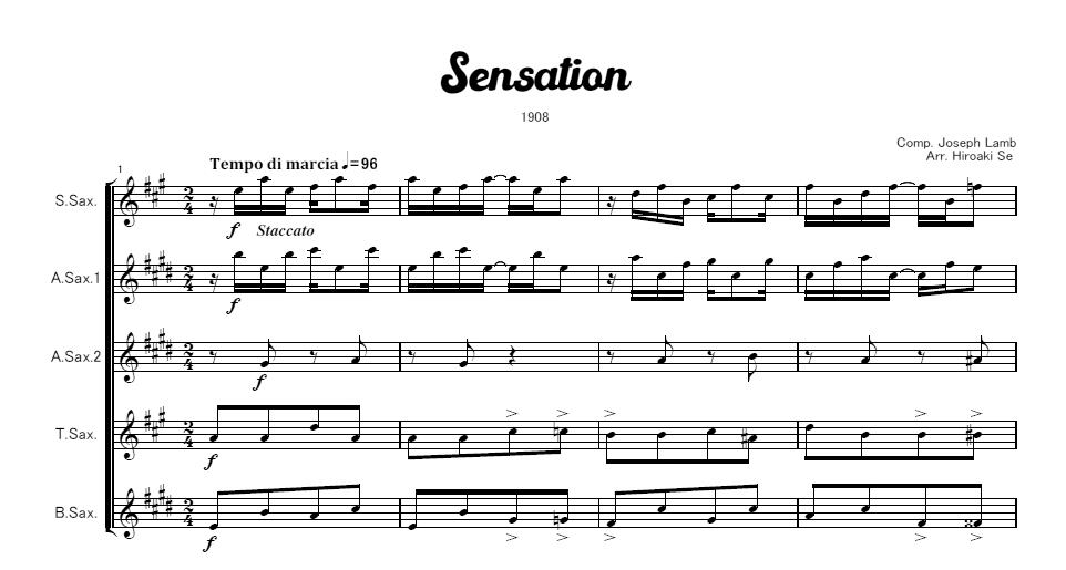 「センセーション・ラグ」は、演奏技術的に難しい曲ですが、その分だけ演奏のやりがいがある曲です。