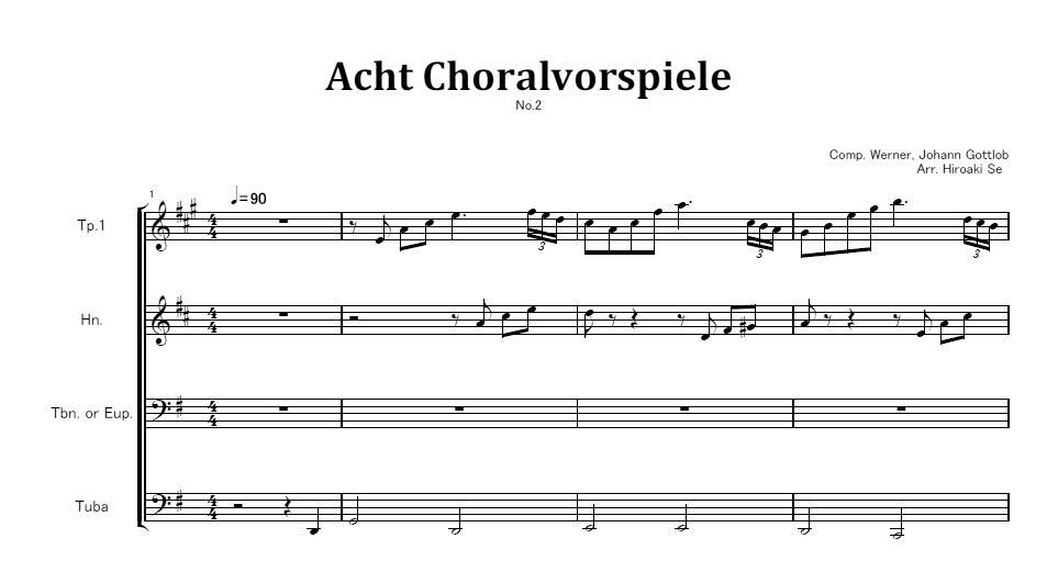 編成はTp.、Hn.、Tbn.またはEup.、Tubaです。
