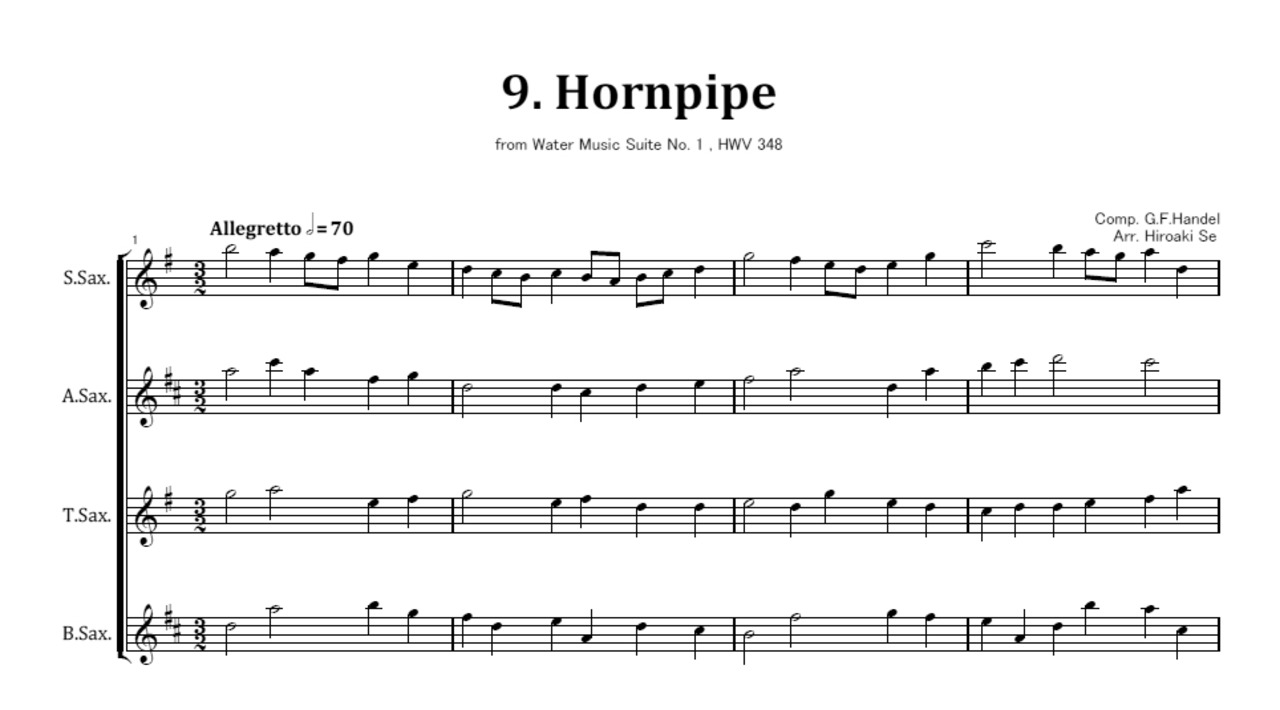 サックス四重奏 ホーンパイプ(水上の音楽 第1組曲-第9曲)