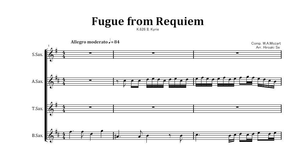 サックス四重奏 キリエのフーガ「レクイエム」から