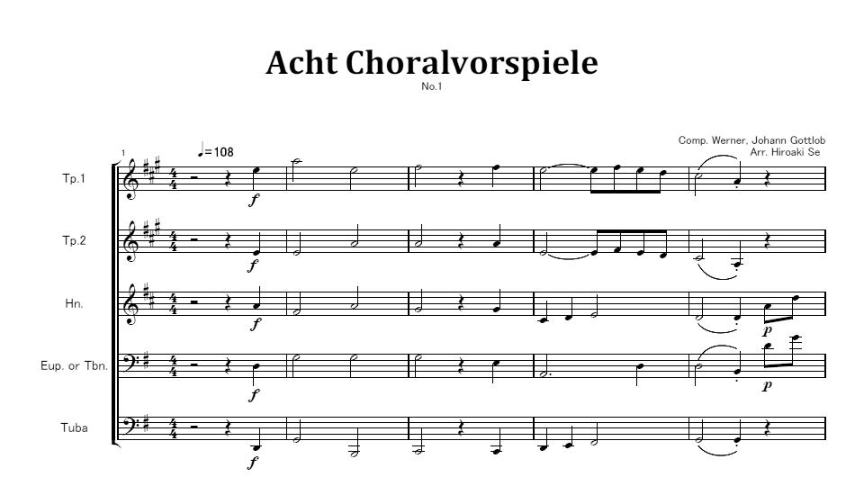 編成はTp.2本、Hn.、Tbn.またはEup.、Tubaです。