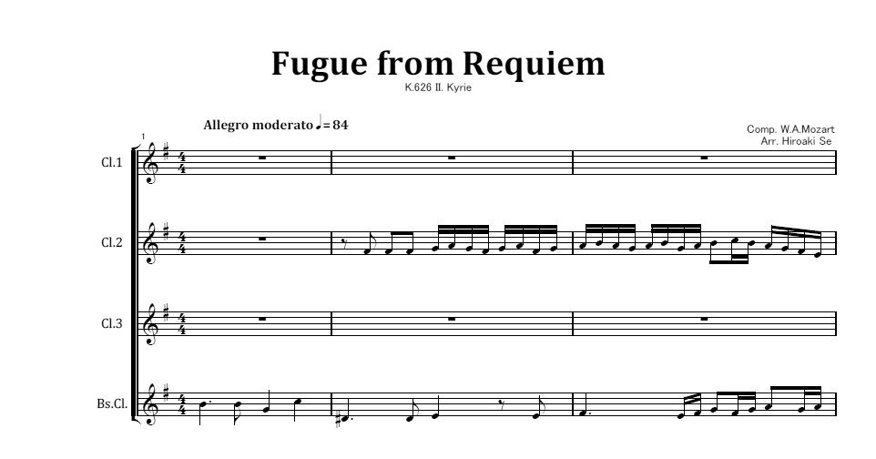 クラリネット四重奏 キリエのフーガ「レクイエム」から