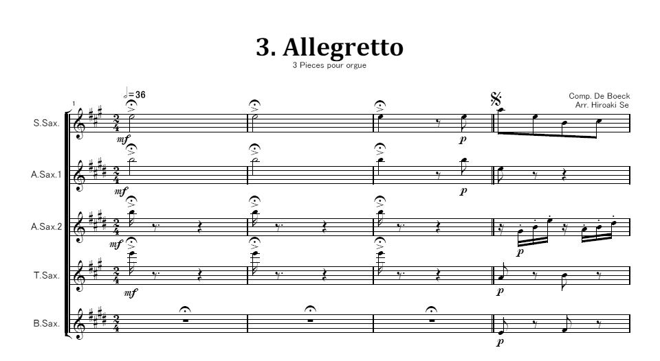 サックス五重奏 3つの小品から第3曲 アレグレット